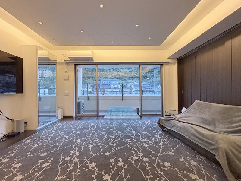 名湯「湯本温泉」が愉しめるリゾートマンション。5階南向き角部屋の2LDK ◆箱根湯本駅徒歩約11分(約850m) ◆露天風呂・サウナ付温泉大浴場 ◆南西角部屋・サービスバルコニー・アルコープ付き