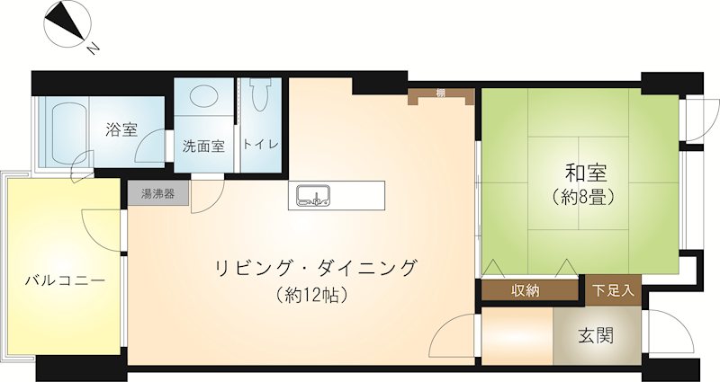 4階1K、眺望の良いコンパクトなお部屋です。