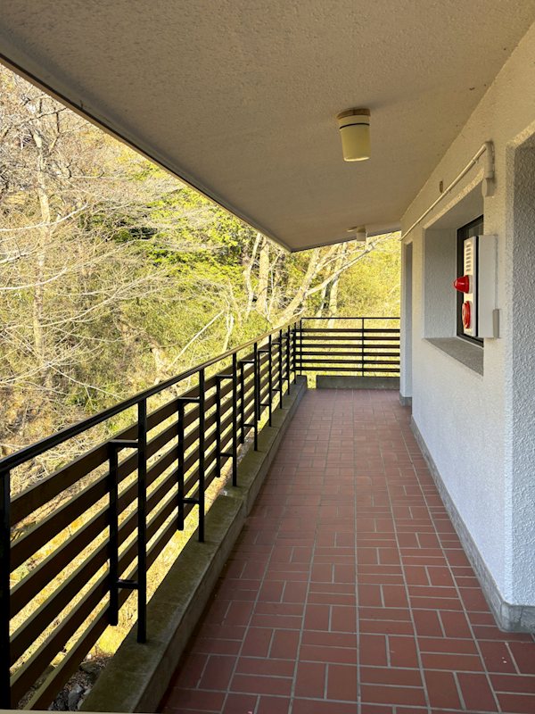 広々とした地下駐車場と白濁温泉の大浴場が魅力。1階角部屋の2LDK ◆41㎡超の広い専用庭付 ◆中強羅からフラットな道のり・歩約6分(約450m) ◆無料の地下駐車場