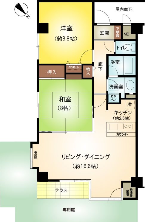 専有:80.89m² / 間取り:2LDK 平成2年(1990年)12月 / 5階だての1階