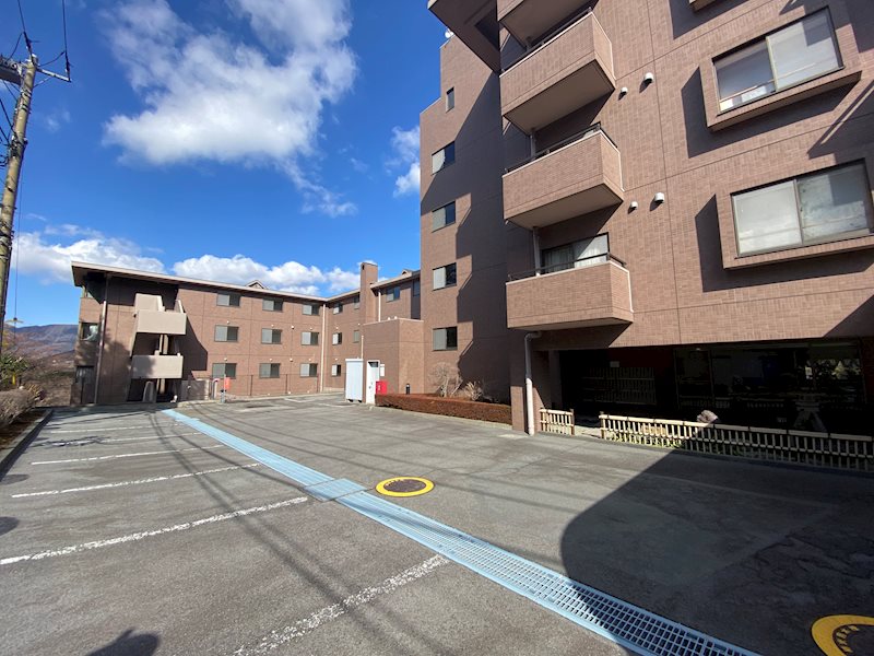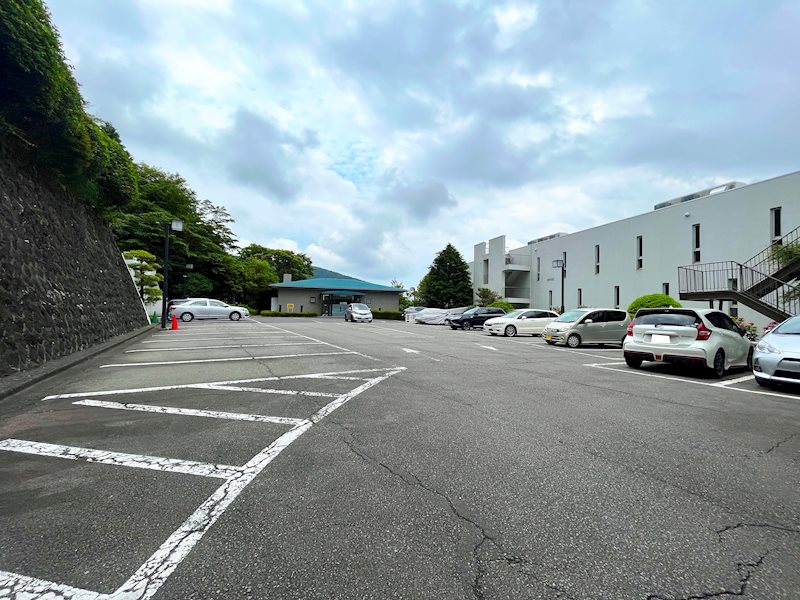 広々とした地下駐車場と白濁温泉の大浴場が魅力。1階角部屋の2LDK ◆41㎡超の広い専用庭付 ◆中強羅からフラットな道のり・歩約6分(約450m) ◆無料の地下駐車場