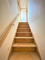 二階へ続く階段でございます。外扉、店舗内どちらからも出入りができます。