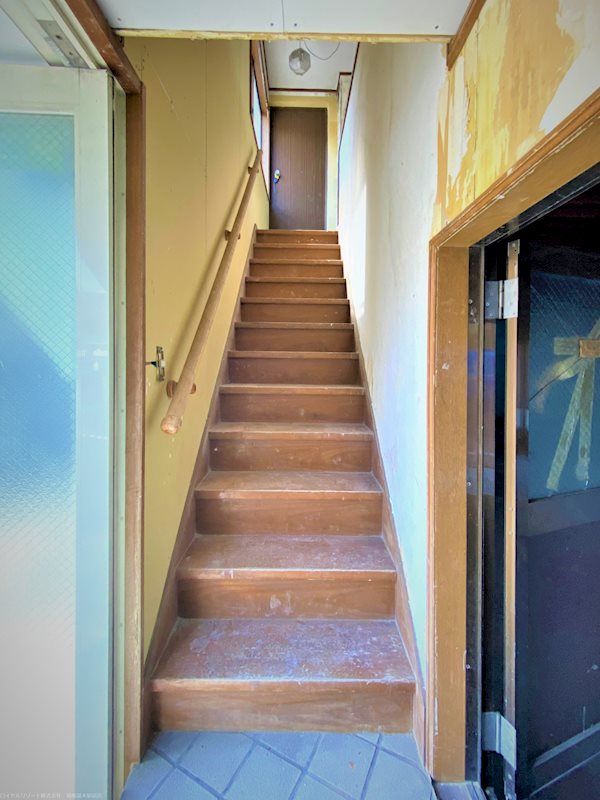 二階へ続く階段でございます。外扉、店舗内どちらからも出入りができます。