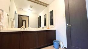 洗面台は、ダブルで広々。大勢のご利用に対応できます。