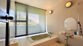 お部屋のバスルームは、ビューバスになっています。温泉ではございませんが、広くて良いです。