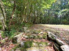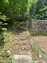 2区画の中央付近に設けられた階段で上の段に進みます。石積み擁壁の上が建築スペースです。