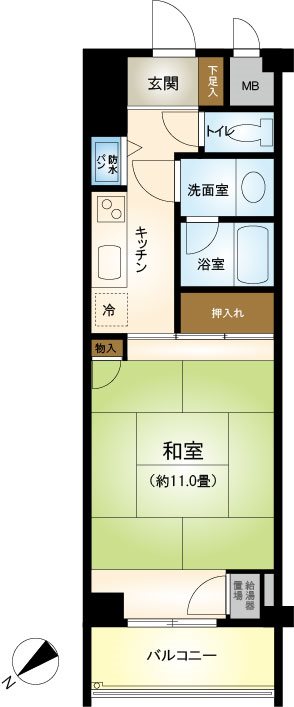 コンパクトサイズの1K。地下駐車場もあり、お車を大事にされる方におすすめです。