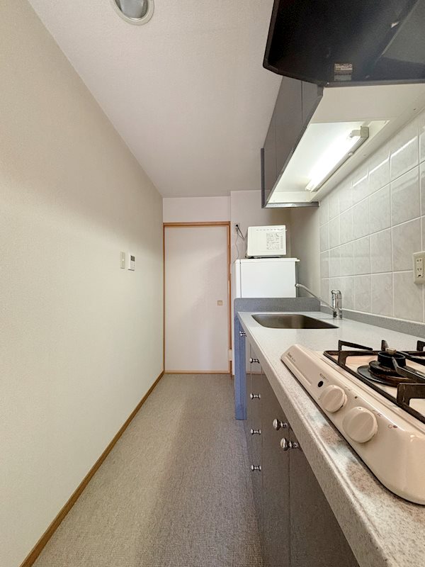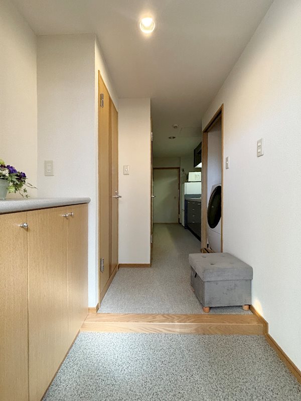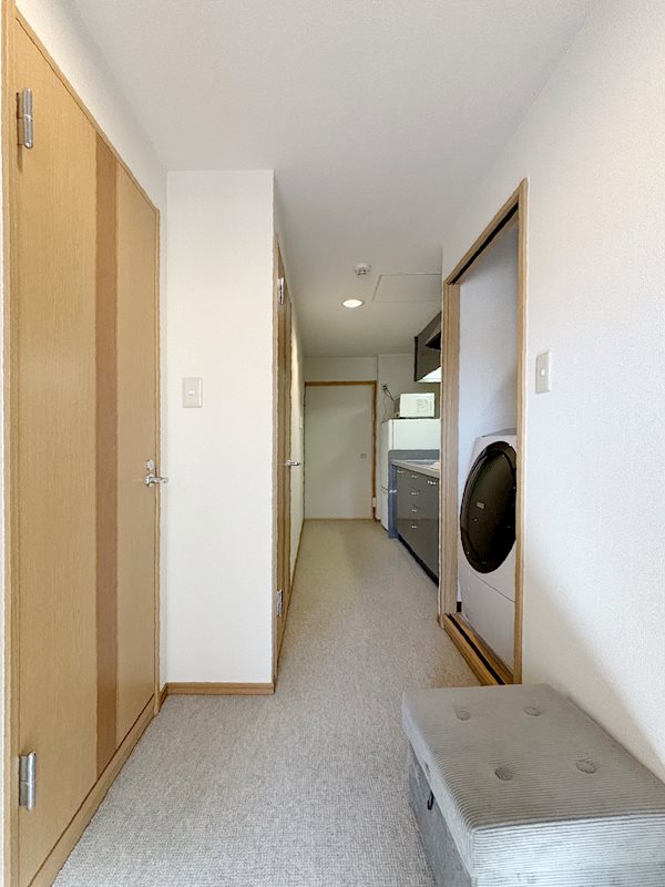 【キッチン】廊下兼キッチンスペースです。右手側には洗濯機置場がございます。