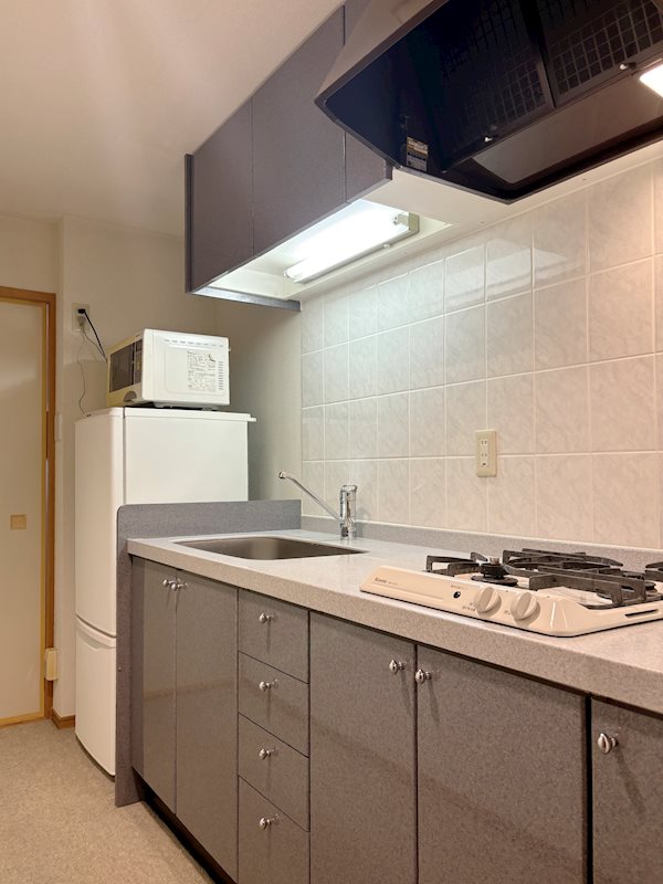 【キッチン】コンパクトですが、短期滞在では不自由なくお過ごしいただけそうです。