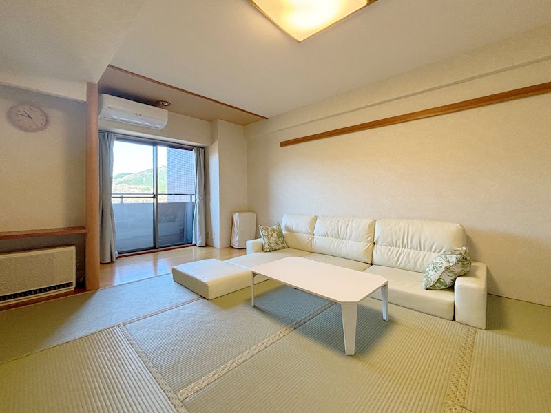 【居室】バルコニー側から和室を撮影。ローソファが配置されています。
