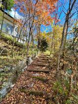 階段を上ると樹々に囲まれた戸建別荘に到着します。