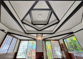 意匠をこらした天井が目を引きます。随所に拘りが感じられる建物です。