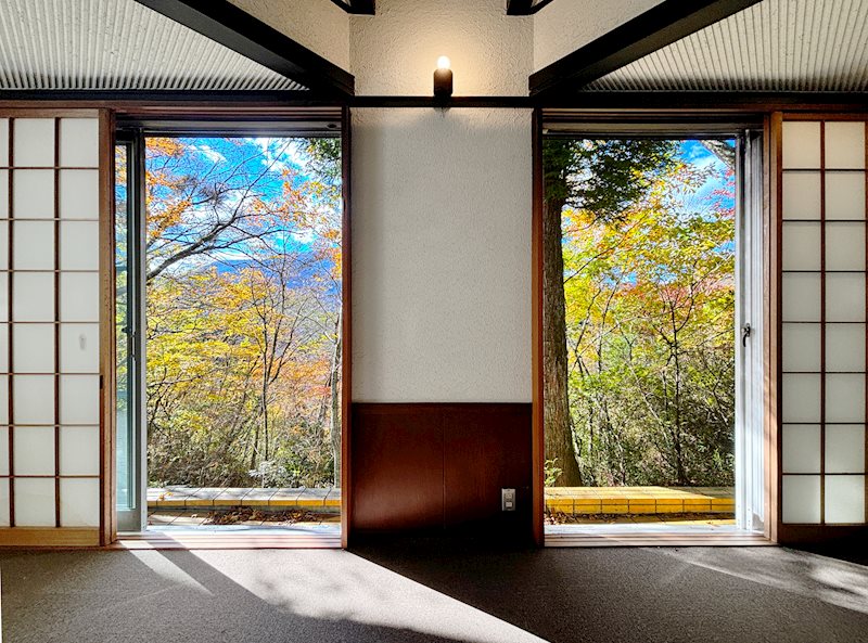 窓からは敷地内の樹々越しに早雲山を望みます。