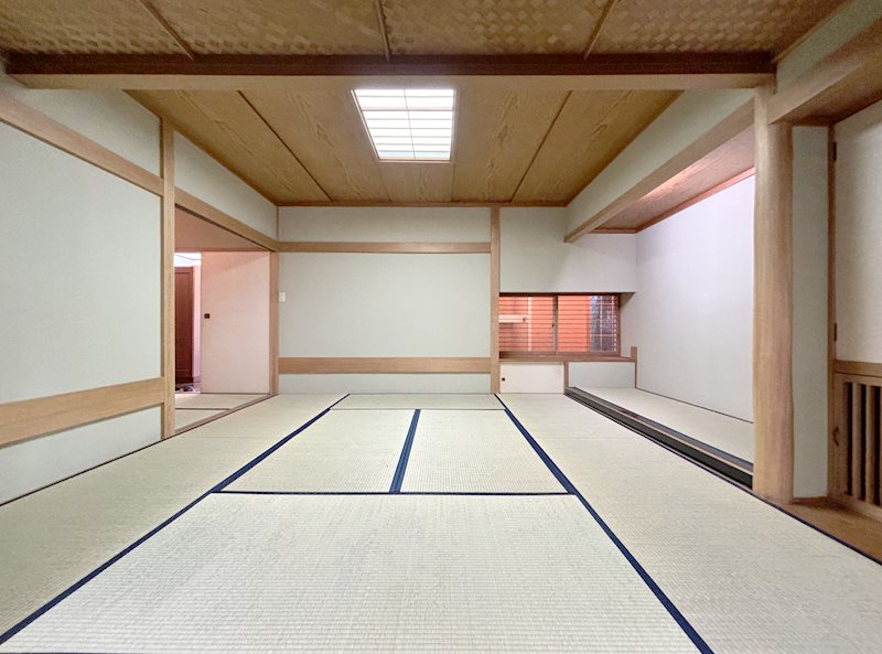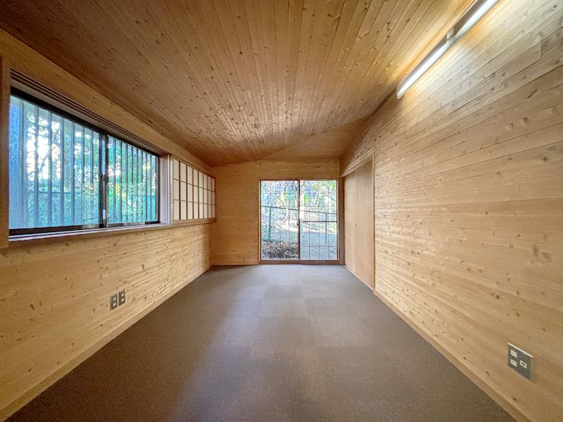 別角度から撮影。照明・網代天井に拘りが垣間見えます。