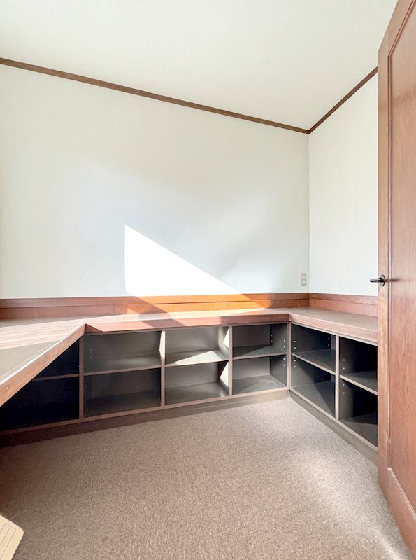 洋室から書斎に続きます。造り付けの棚が造作されています。