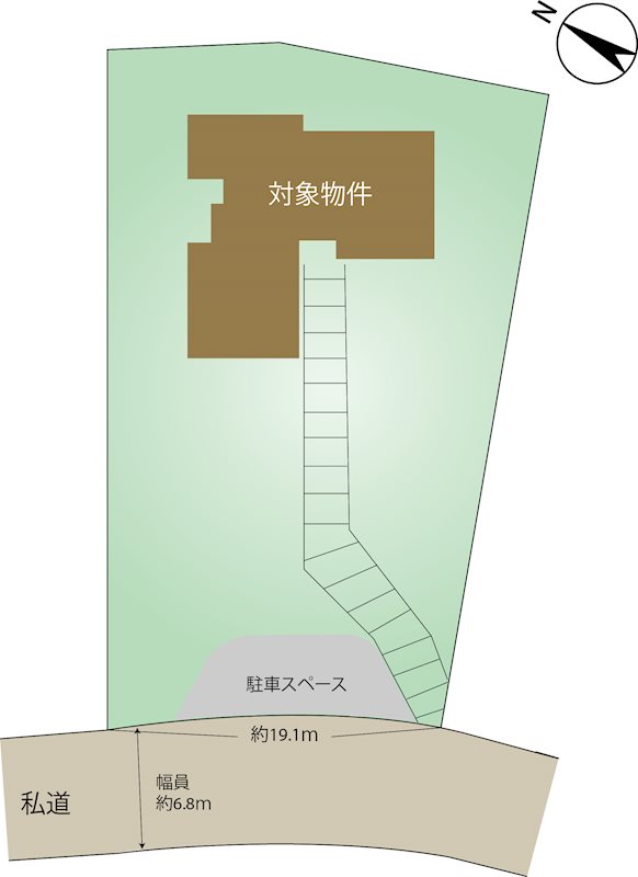 主な接道 | 私道、西、幅員:6.8m、接道長さ:19.1m、舗装あり | ||