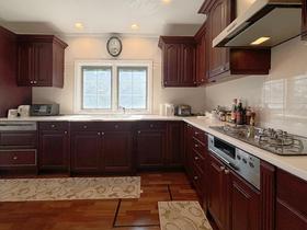 【ダイニングキッチン4】L字型のシステムキッチンは作業スペースも広々としています。