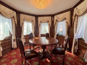 【ユーティリティルーム】ボウウィンドウの爽やかなスペースにラウンド型のテーブルを配置されています。