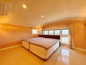【小屋裏収納】寝室兼倉庫として利用中の小屋裏収納庫です。エアコンも設置されています。