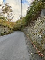 【前面道路】こちらは北西側の私道(坂道)です。道路の左側が対象の土地です。