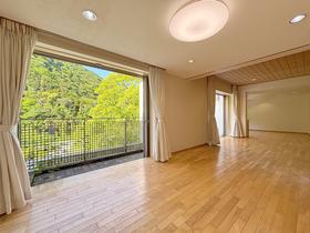 箱根旧街道沿いのデザイナーズマンション「コンドミニアム桜」4階部分、161.41㎡の3SLDKをお預かりしました。LDKは驚異の約34帖、広めのリビングでお探しの方におすすめです。室内は全体的に内装・設備のリフォームを要します。メンテナンスは必要ですが、須雲川温泉を戸別温泉で楽しめる唯一のマンションとなります。お問い合わせをお待ちしております。