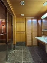 【浴室】須雲川温泉を愉しめる御影石の浴槽です。脱衣所との仕切りはガラス張りにされています。