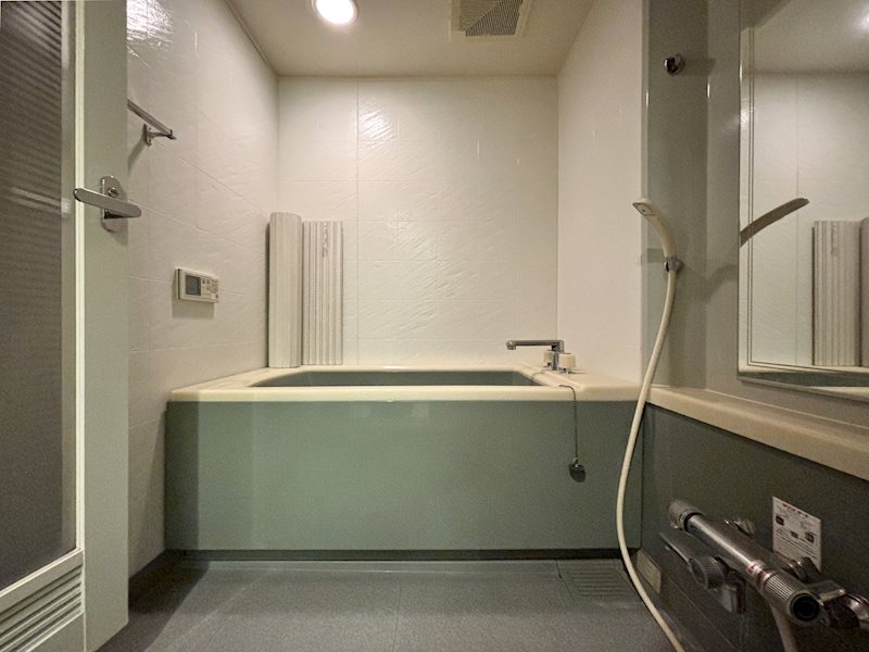 【浴室】お部屋の浴室です。C棟に温泉大浴場があるため、あまり利用されていない様子です。
