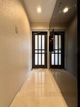 【共用廊下】エレベーターで5階へ。内廊下を抜けた正面のお部屋です。同じフロアに大浴場がございます。