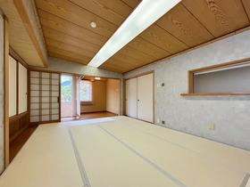【和室】最上階のお部屋ならではの勾配天井の仕様です。二面採光で明るく、風通しも良好です。