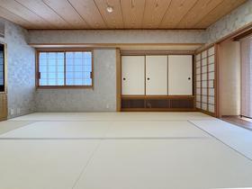 【和室】キッチンとカウンター越しに繋がる和室。ゆとりの12畳と広縁スペースがございます。