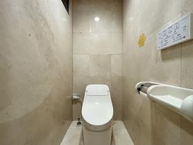 【トレイ】タンクレス温水洗浄機能付トイレが採用されています。