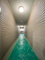 【共用部】玄関外側の通路も明り取りの窓があり、明るい雰囲気です。※現在大規模修繕工事中のため敷物がされています。