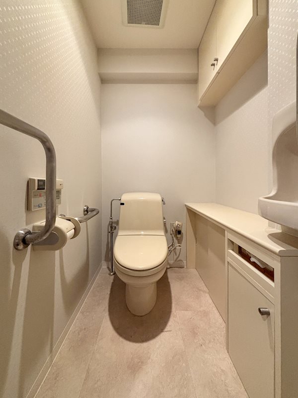 【トイレ】手洗い器付きのトイレです。交換をご希望の場合は、お見積りをお出しすることも可能です。お気軽にお申し付けくださいませ。