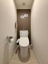 【トイレ】アクセントクロスが採用されたトイレ。便器等も交換され、清潔な印象です。