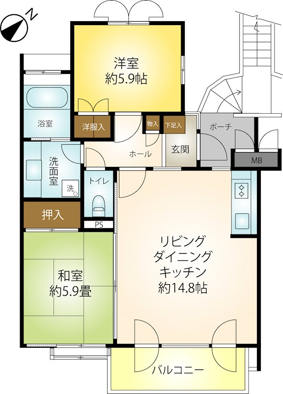専有面積 | 58.99m² (17.84坪) | バルコニー面積 | 5.60m² (1.69坪) |