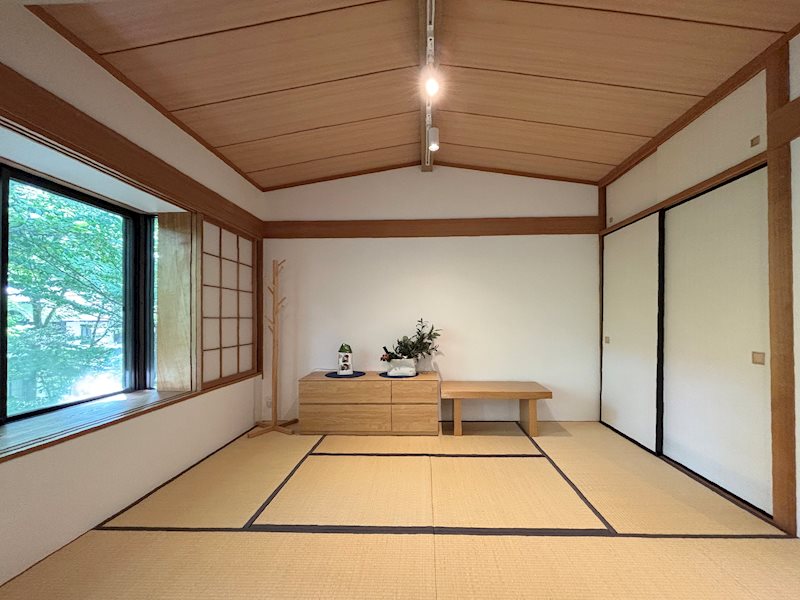 【和室】リビングと隣接する約5.9帖の和室です。こちらも船底天井にされています。