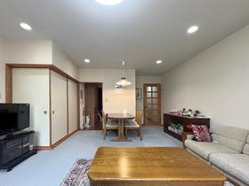 【リビング】廊下側から室内を撮影。リビングのエアコンは天吊りタイプです。
