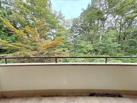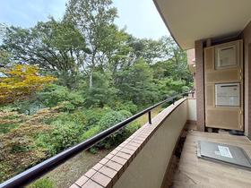 【バルコニー】眼前に森が広がりますが、適度に距離があり、圧迫感はございません。