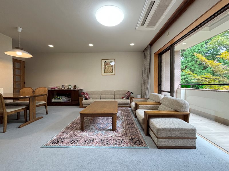 【リビング】樹々の緑に癒され、落ち着いた印象のリビングです。