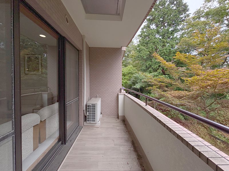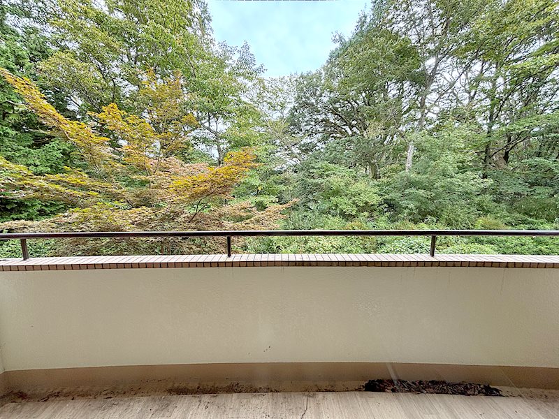【バルコニー】眼前に森が広がりますが、適度に距離があり、圧迫感はございません。