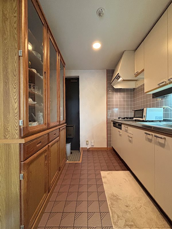 【キッチン】リビング側から正面方向を撮影。奥に勝手口がございます。