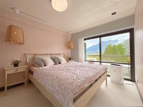 【洋室】約7.6帖の洋室は、暖かみのあるピンクの珪藻土が塗装されています。