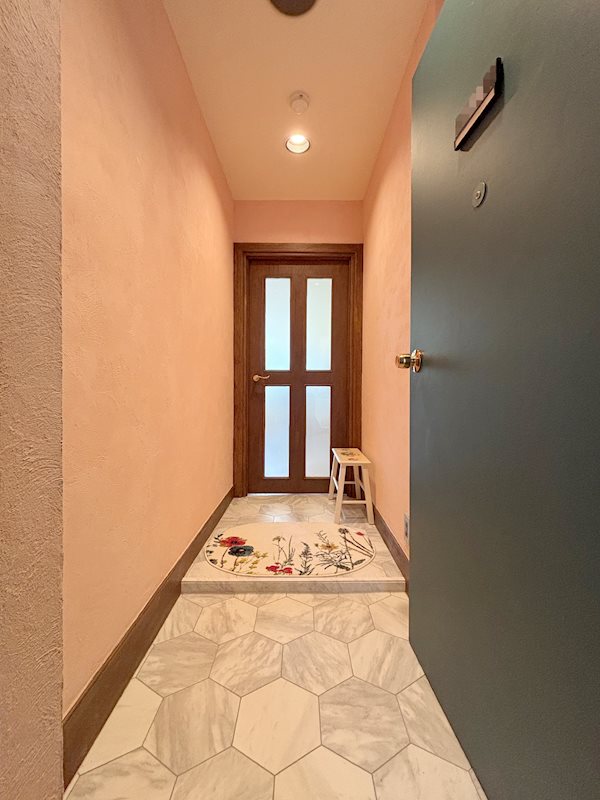 【玄関】ドアは内開きの仕様です。それでは室内へ進みます。