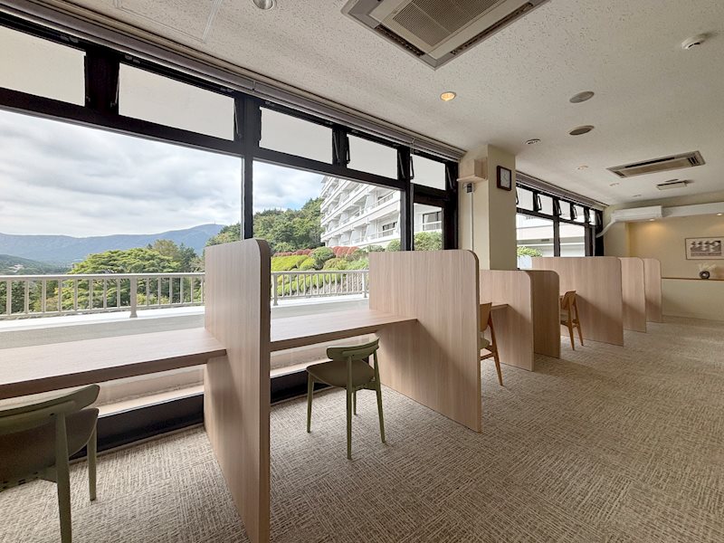 【眺望】強羅方向の眺望です。大涌谷を行き来するロープウェイを肉眼でご覧いただけます。