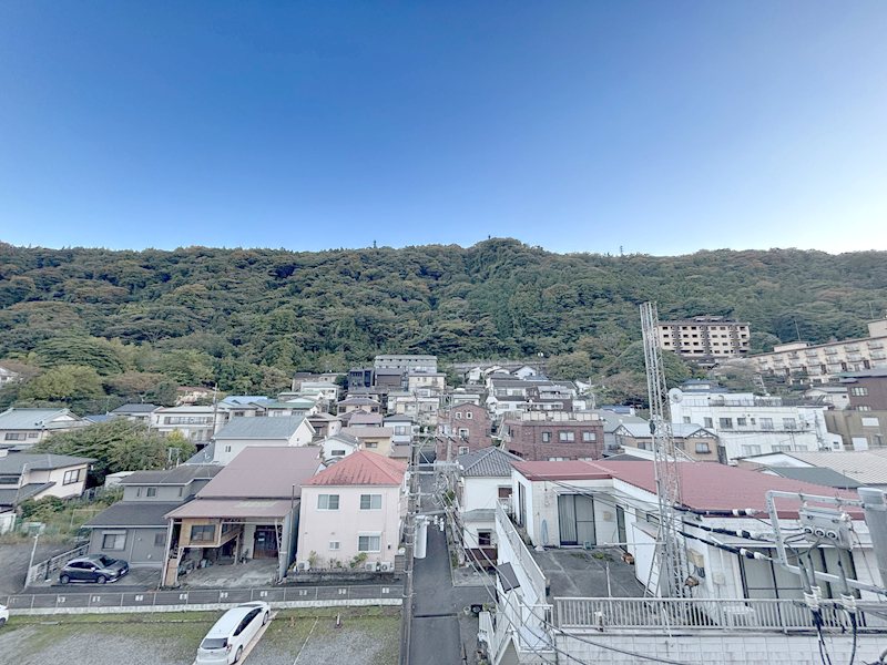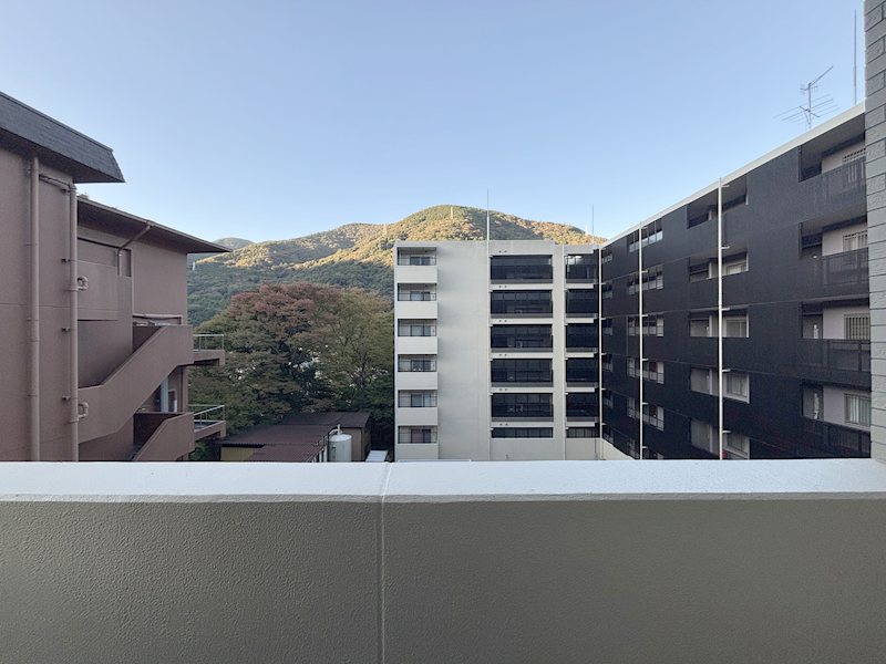【眺望】バルコニーからの眺望は湯本の落ち着いた町並みが広がります。