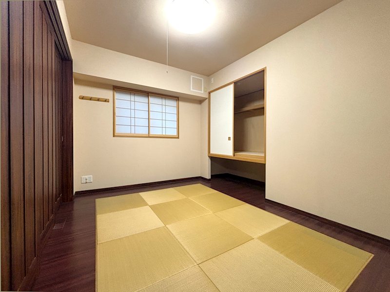 和室はコンパクトですが、中央は琉球畳敷など和モダンなスタイルとなっております。