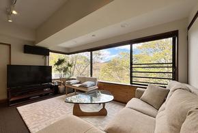 令和6年大規模修繕工事を完工した「ファミール・ヴィラ強羅2番館」2階(呼称階1階)角部屋のご紹介です。平成30年に室内リフォームされていたお部屋を購入後に、追加工事としてエアコン3台交換、ブラインドを設置されています。角部屋により十分な開口部が確保されているため、風通し、日当たりがよく、木々の移ろいを存分に楽しむことが出来ます。静かな環境のため、リゾート・定住どちらの用途でもおすすめです。是非ご検討いただければと存じます。どうぞよろしくお願いいたします。