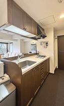 こちらはキッチンスペースです。リビング・ダイニングと向かい合ったカウンタータイプで作業しながら眺望を楽しめます。