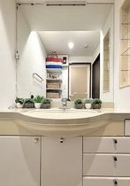 こちらは洗面台です。大きな鏡で利用しやすくなっております。