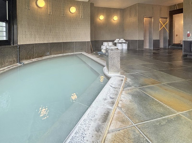 こちらは温泉大浴場です。白濁の温泉をお楽しみいただけます。